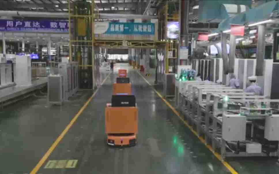 为车载冰箱物流配送打造的智能解决方案,,包含产中物流通过潜伏举升AMR搬运至线边,,产后成品物流智能仓储,,,流程包含产中物流智能齐套入库,,,线边安灯叫料AMR智能配送至线边,,成品入库、、、、出库,,,,通过无人堆高车机器人,,,,智能仓储管理替代人工作业管理,,,实现更高存储、、更高效率、、、更具柔性化的解决方案。。。